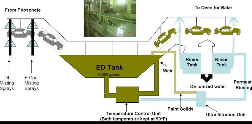 BIW → PT Line → Phosphating → ED → Oven → Sealing → Wax → Topcoat
