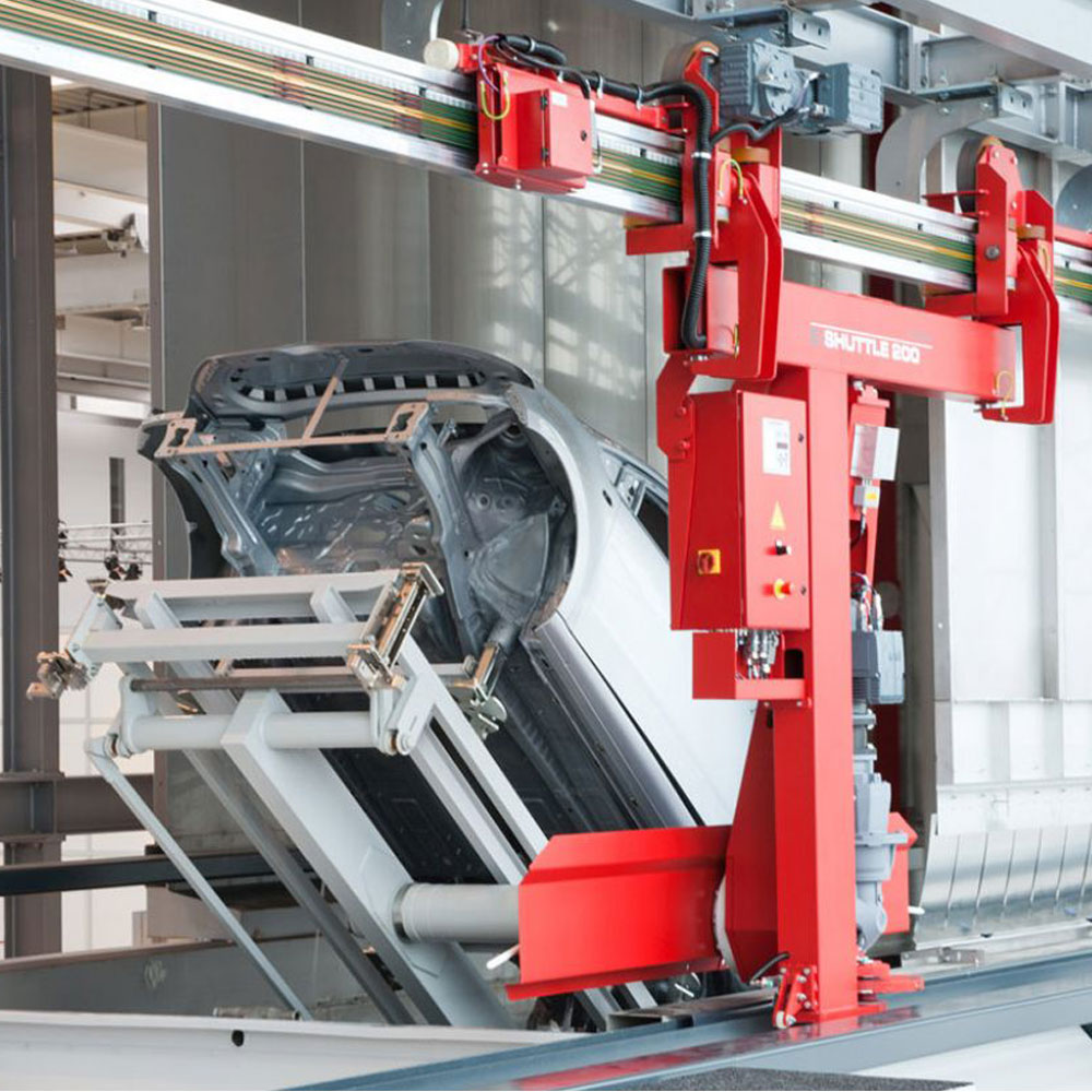 Hệ thống vận chuyển – nhúng – nâng hạ – xoay của Eisenmann sử dụng robot và PLC Siemens/Beckhoff: