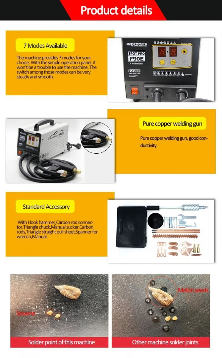 Máy hàn giật tôn 90E có thể cấu hình với nhiều phụ kiện sửa chữa thân vỏ như: