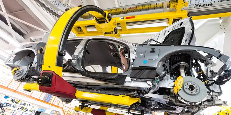 Các hãng lớn sử dụng Heavy-Duty Electric Monorail System để vận chuyển thân xe tải trọng nặng, đặc biệt là xe điện EV có bộ pin lớn.