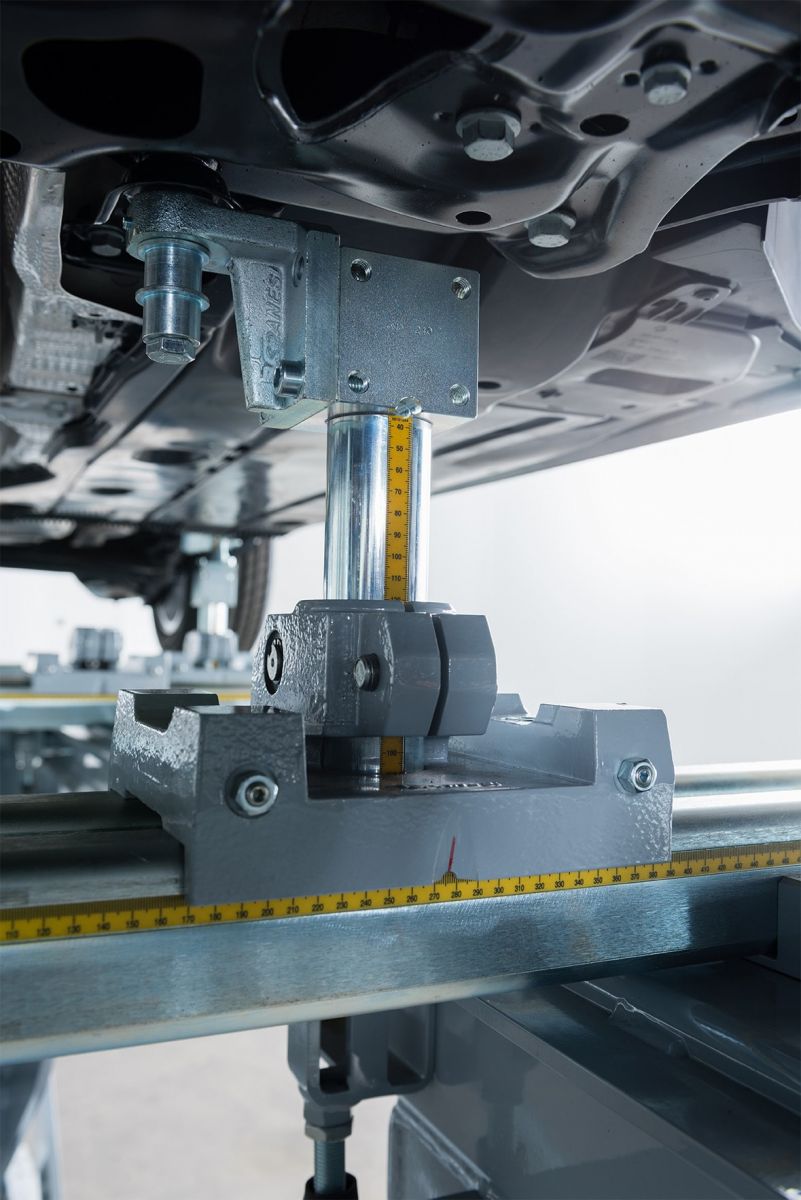 Hệ thống clamp điều chỉnh được chiều cao theo từng loại gầm xe, giúp cố định thân xe chắc chắn trong mọi tình huống kéo nắn.