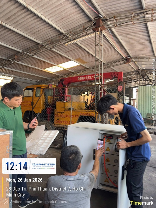 Tân Phát Etek hiện đang triển khai dòng trạm sạc pin di động dung lượng 26kWh, phục vụ thực tế cho các garage, trung tâm dịch vụ xe điện và dự án công nghiệp nhẹ.